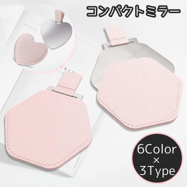 コンパクトミラー ハンドミラー 手鏡 レザー調 ハート型 正方形 長方形 六角形 ミニ メイク 携帯 可愛い キュート お洒落