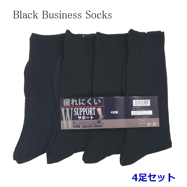 靴下 メンズ ビジネスソックス 【4足組】 黒 疲れにくい サポートゴム シンプル クルー丈 営業 外回り 通勤 通学 1000円ぽっきり