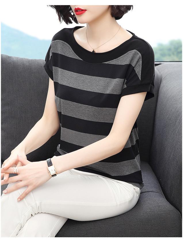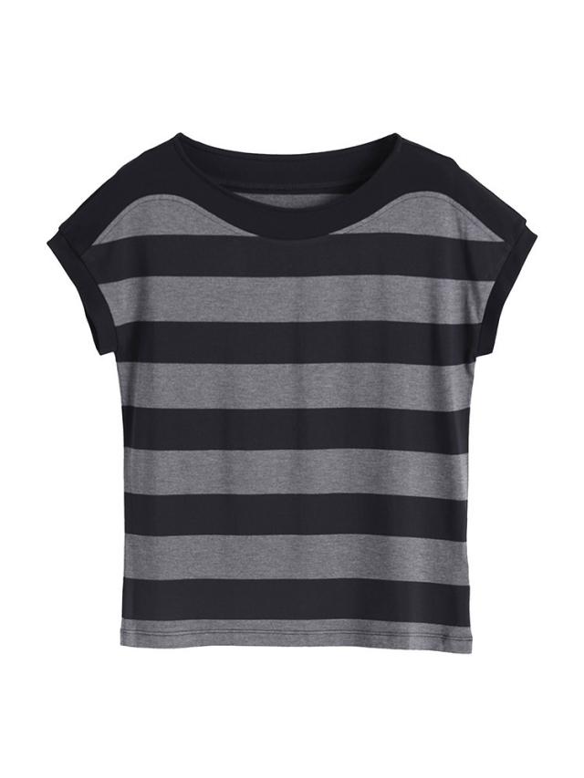 送料無料 太ボーダー 半袖 Tシャツ ボーダーTシャツ プルオーバー フレンチスリーブ ラウンドネック ボートネック 薄手 カットソー スエット ゆったり とろみ