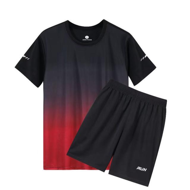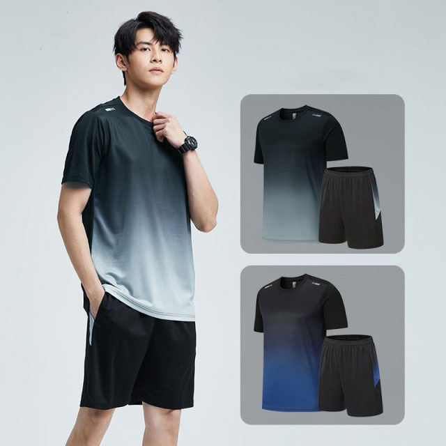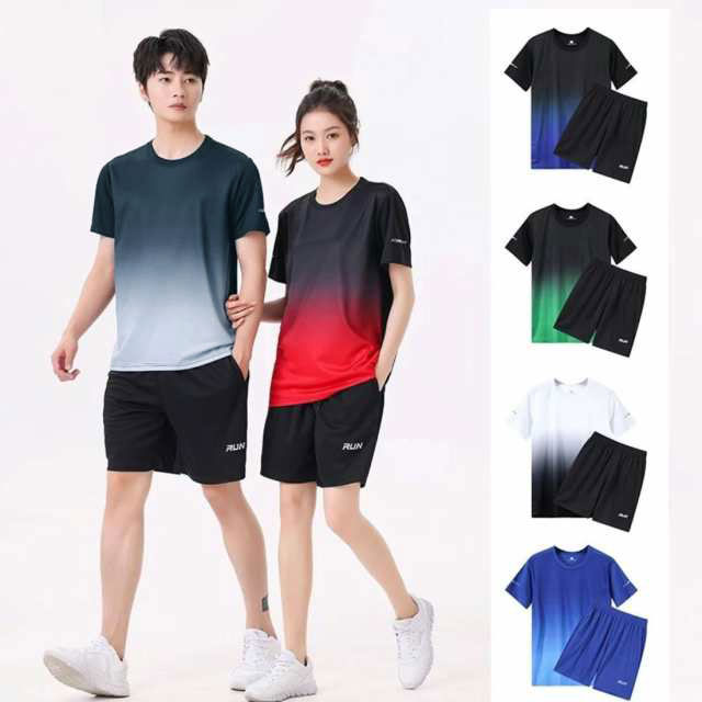 【送料無料】 スポーツウェア メンズ レディース 上下セット 半袖 卓球ユニフォーム 運動着 練習着 通気性 吸汗速乾 トレーニングウェア グラデーション Tシャツ ショートパンツ ジャージセット 卓球ウェア