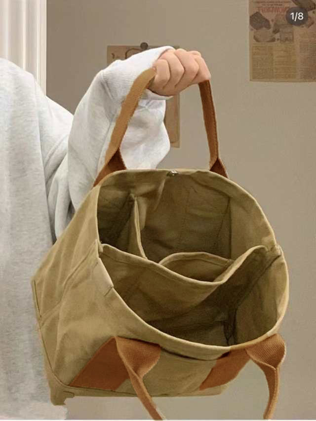 トートバッグ レディース キャンバス 横型 大きめ ファスナー付き アクセサリーなし 通勤 通学 整理整頓 仕切り付き キャンバストート 大人 無地