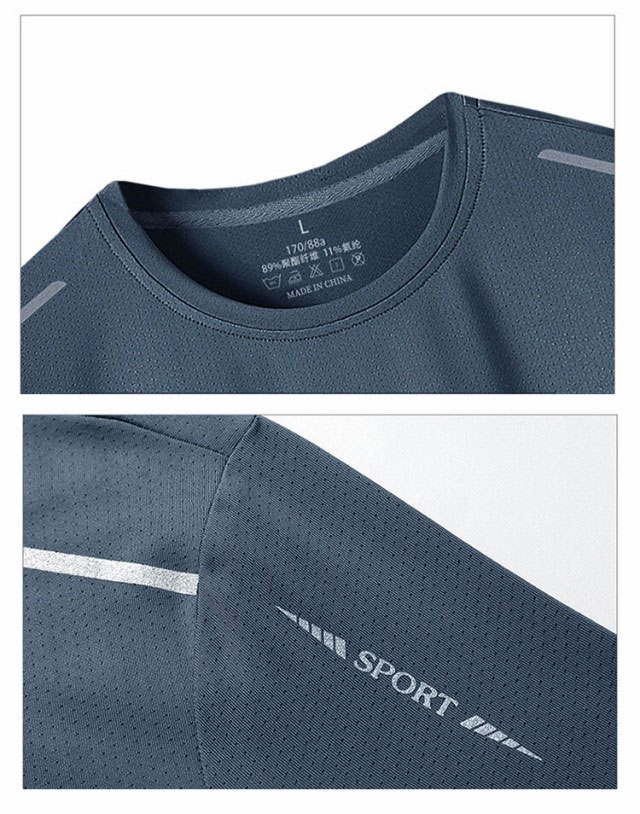 半袖 Tシャツ 接触冷感 夏用 涼しい トップス クルーネック 吸汗速乾 UVカット メンズ メッシュ スポーツ 作業服 作業着 ランニング