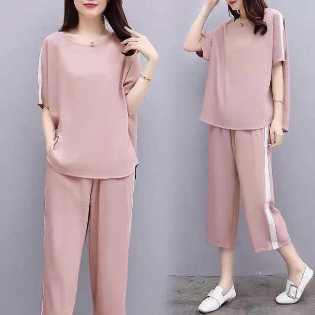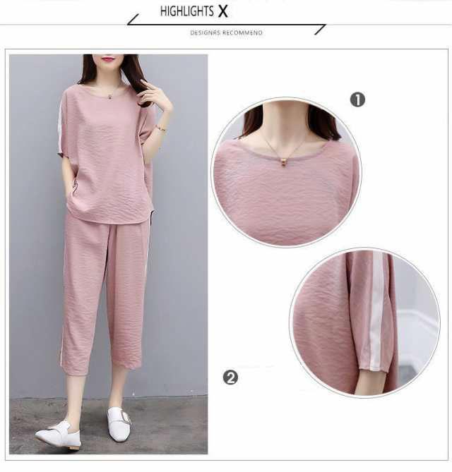 送料無料 スウェット セットアップ レディース ジャージ 上下セット ルームウェア パジャマ 部屋着 春 秋 夏 半袖 サイドライン トレーナー スエット スウェット 上下セット
