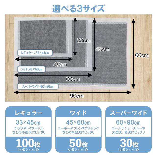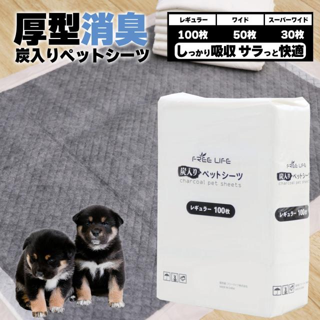 炭入りペットシーツ 厚型 ペットシーツ 消臭 レギュラー 100枚 ワイド 50枚 スーパーワイド 30枚 ペット 犬 猫 使い捨て 多頭飼い シート トイレシート 吸水 ワンパック