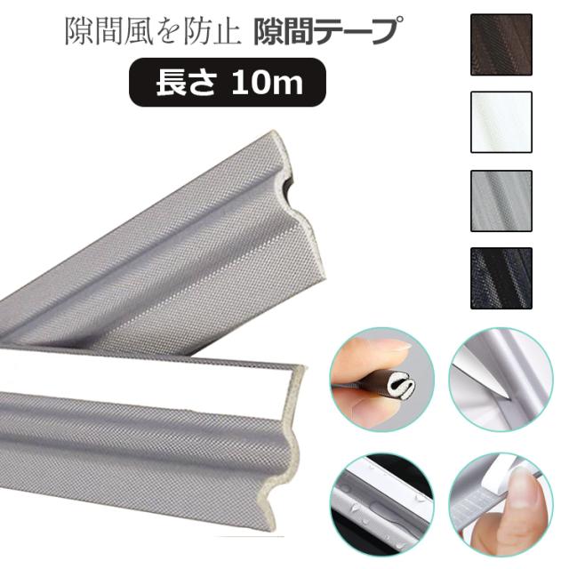 隙間テープ 隙間プロテクト 10m 【4色】窓 すきま風 隙間 防止 テープ すき間テープ テープ すきまパッキン すき間 すきま風ストッパー すきま風防止 遮音 防音 シール 省エネ 隙間風 グレー ホワイト ブラウン ブラック