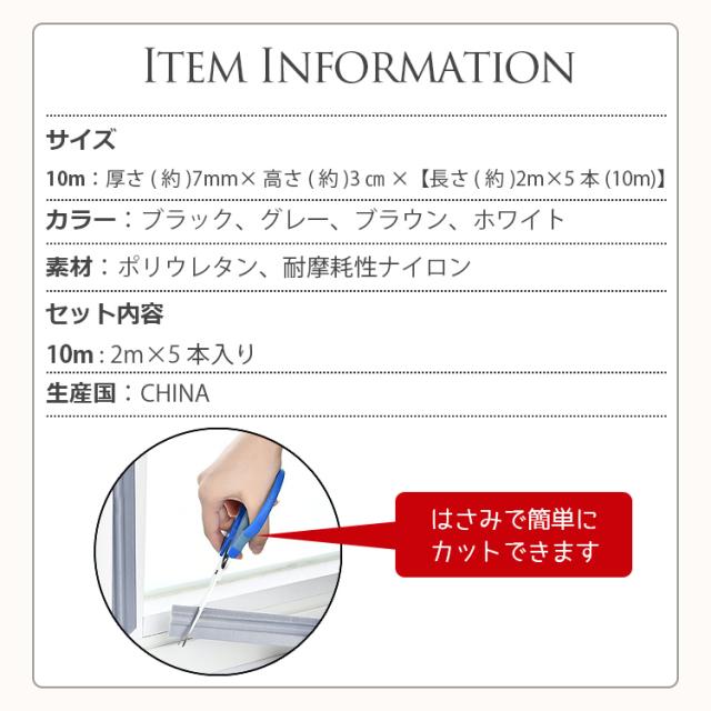 【ハサミで簡単にカットできる♪お手軽 隙間テープ 10m[長さ(約)2m×5本(10m)]】