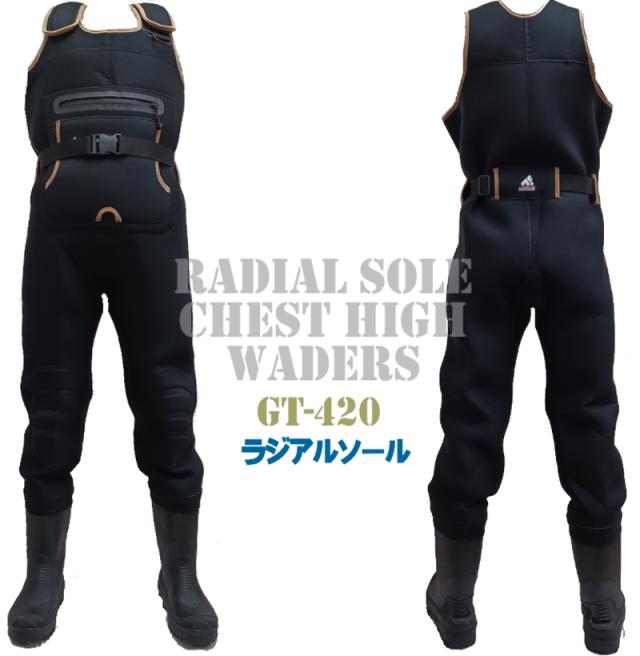 クロロプレンウェーダー ラジアルソール 防寒 防水 耐摩耗 に優れたクロロプレーン使用 ウエダー ウェダー 胴付長靴 胴長 長靴 土木 ラジアル底 災害 清掃 ネオプレン ネオプレーン GT-420 水産 完全防水 チェストハイ