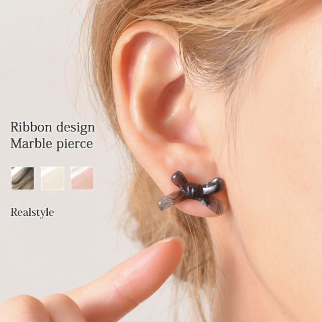 ●リボンデザインマーブルピアス