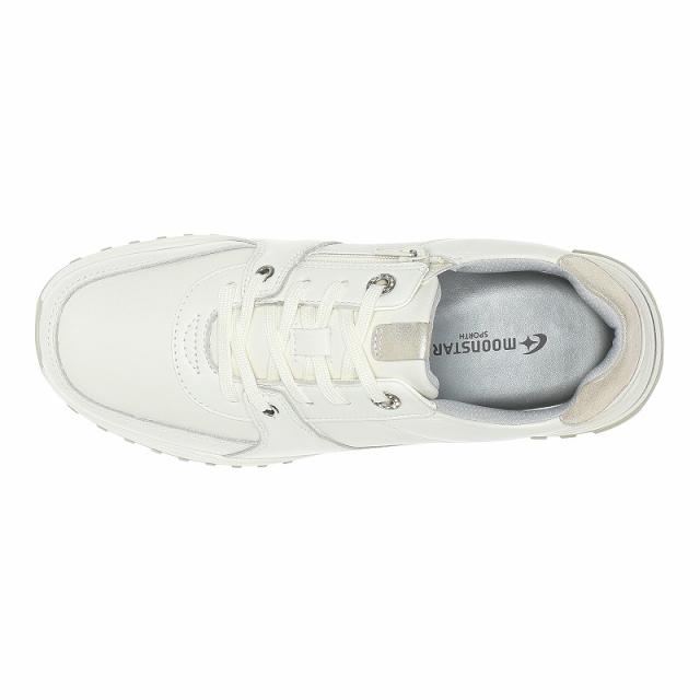 送料無料ムーンスター スポルス レディース SP0800 ホワイト 厚底スニーカー 靴 シューズ 外反母趾 衝撃吸収 撥水 カジュアル 通勤 柔らかい 散歩 革靴 天然皮革 白 母の日