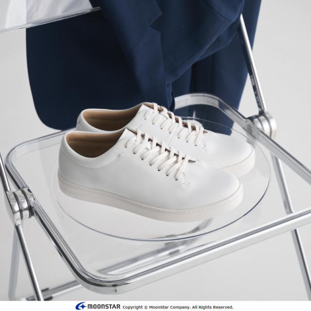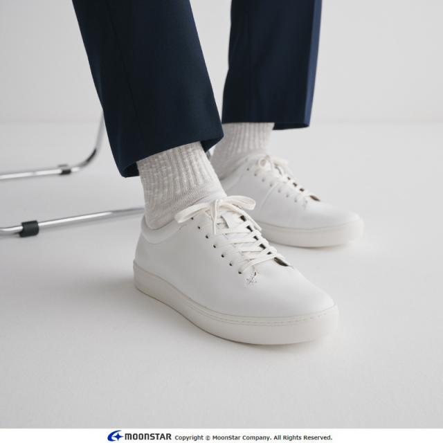 送料無料ムーンスターワールドマーチ メンズ スニーカー GE102 ホワイト/ホワイト カジュアル シューズ 革靴 通勤 カジュアル 防水(4cm8時間) 透湿防水 撥水レザー 抗菌防臭 天然皮革 父の日