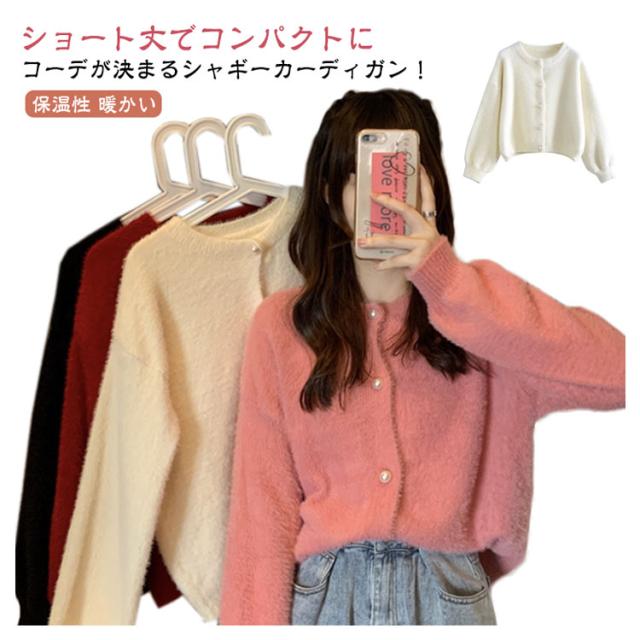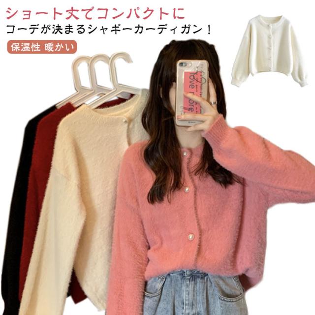 シャギーニット ショート丈 あったか シャギー 羽織り シャギーカーディガン アウター 無地 レディース もこもこ トップス 秋冬 ニットカーディガン 柔らかい ふわふわ もこもこ カーディガン シンプル カジュアル 防寒 きれいめ おしゃれ