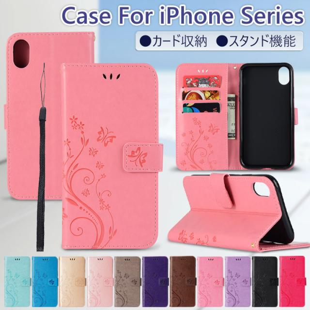 iPhone 16e 第4世代 ケース 手帳型 iPhone se 第2世代 ケース iPhone XR ケース iPhone XS Max ケース 耐衝撃 XS X 8 plus 7ケース レザー おしゃれ オシャレ アイフォンSEケース 第2世代 頑丈 薄い 軽量 保護カバー 花柄 型押し 蝶 手帳ケース カード収納 スタン機能