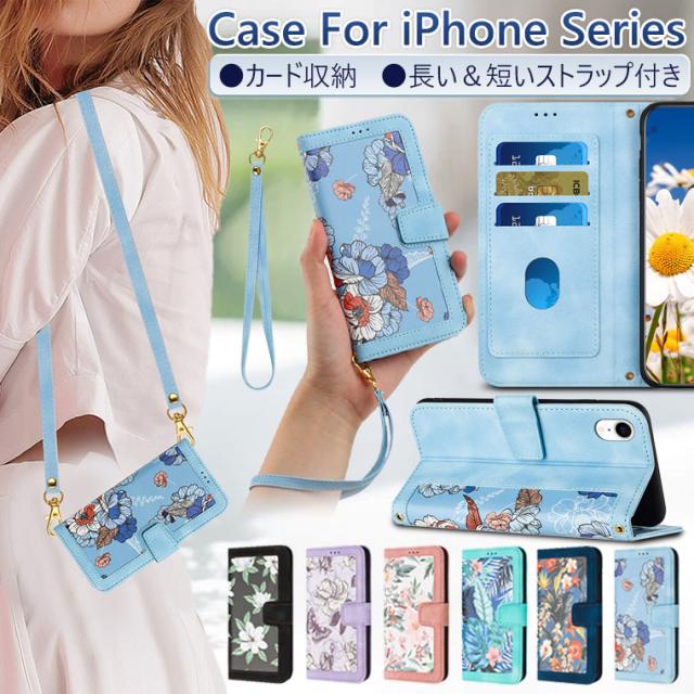 iPhone 16e 第4世代 ケース 手帳型 se 第2世代 ケース iPhone XR ケース ショルダー 斜め掛け iPhone XS Max ケース 耐衝撃 XS X 8 plus 7ケース 花柄 手帳 レザー おしゃれ オシャレ アイフォンSEケース 第2世代 頑丈 軽量 保護カバー カード収納 スタンド ストラップ付