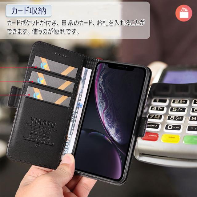 ●財布型ケースとして、名刺やお札などを入れるカードポケットがつき、日常生活に便利です。