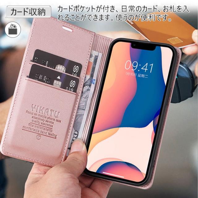 ●財布型ケースとして、名刺やお札などを入れるカードポケットがつき、日常生活に便利です。