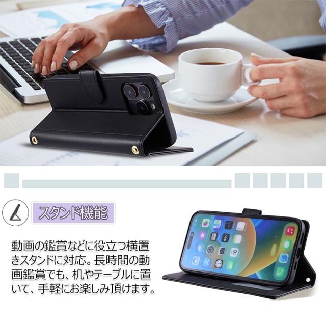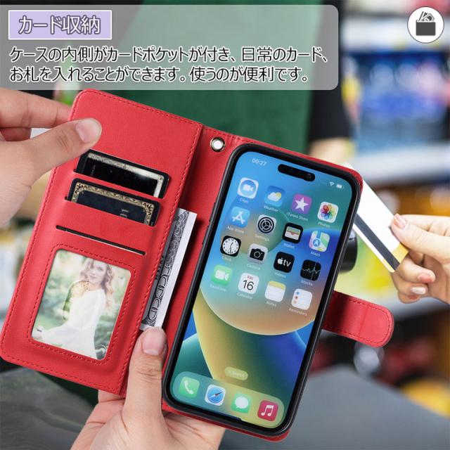 ●財布型ケースとして、名刺やお札などを入れるカードポケットがつき、日常生活に便利です。