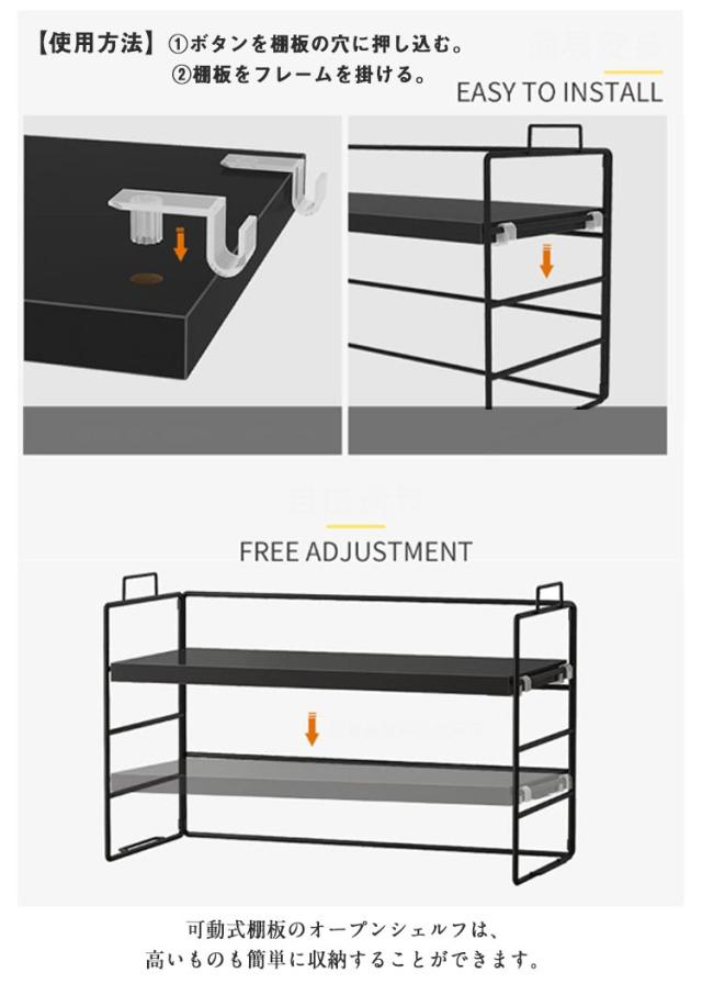 | サイズ | 棚板1枚(白フレーム) 棚板2枚(白フレーム) 棚板1枚(黒フレーム) 棚板2枚(黒フレーム) |