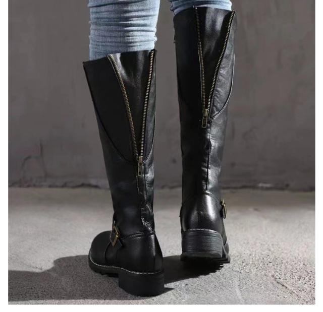 ロングブーツ 筒周り 幅広 大きい レディース ロング ブーツ エンジニアブーツ ふくらはぎ 履き口 ゆったり ブーツ PUレザー ローヒール 太ヒール 痛くない 履きやすい 疲れない ファスナー 柔らかい 歩きやすい 大きいサイズ 美脚 ブーツ 送料無料