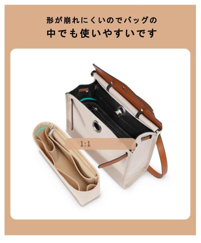 | エルメスのサイズにピッタリフィットするようにインナーバッグ 軽くて丈夫なフェルト素材で、利便性の高さはもちろん、バッグの型崩れ防止にも! 形が崩れにくいのでバッグの中でも使いやすいです 小物や財布、鍵、コスメや定期など取り出しやすく、見つけやすい 女性のバッグの中は、何かと物が多く、小物の収納に困ってる方にお勧めのバックインバック | |