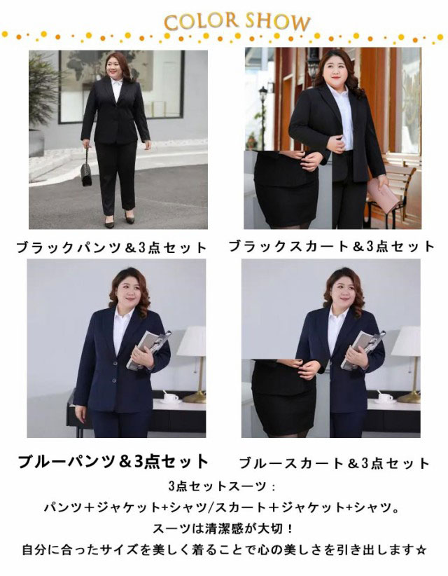 | S~8XL 社会人にも学生にも定番の3点セットパンツスーツ/スカートスーツ 3点セットスーツ:パンツ+ジャケット+シャツ/スカート+ジャケット+シャツ。スーツは清潔感が大切!自分に合ったサイズを美しく着ることで心の美しさを引き出します☆ 穿き心地もおしゃれ度も抜群の一枚です。ご家庭で洗濯できる、シワになりにくい上質素材を使用しています。 シワになりにくい上質素材を使用しています。 着やすくしっかりした生地。細部までこだわった縫製技術。 ビジネス・オフィススタイルとしてご活躍頂けます。通勤/就活/面接/お受験/入学式/同窓会/卒業式/OL 仕事/ビジネス/事務服/制服/七五三/お宮参り/冠婚葬祭/お受験/入園入学/参観日に。 | |