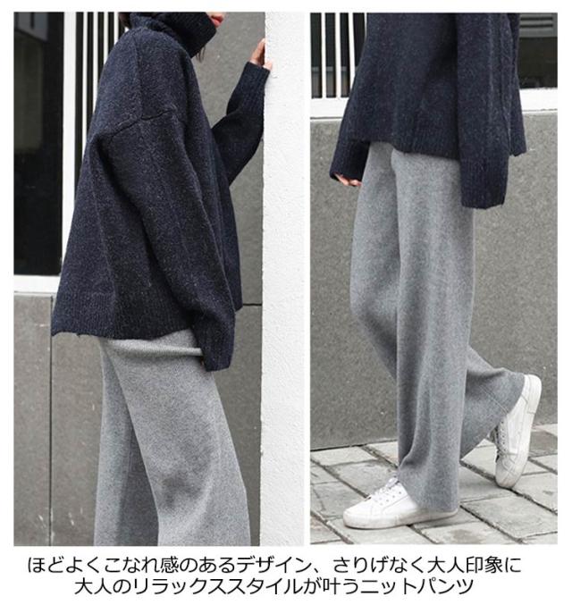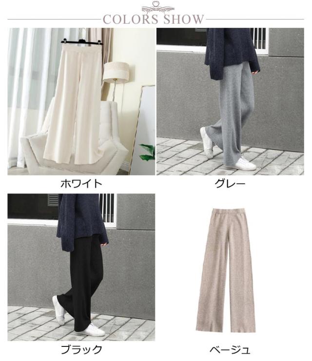 リブ ニットパンツ きれいめ 冬 ワイドパンツ 白 冬 プリーツパンツ 春秋 リブパンツ リブニットパンツ 秋冬 ウエストゴム ストレートパンツ ワイドパンツ 大きいサイズ カジュアル
