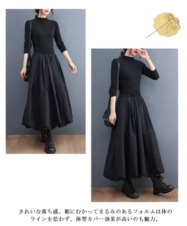 バルーンスカート レディース 大人 スカート ロングスカート ミモレ丈 フレアスカート 黒 可愛い きれいめ ロング スカート ボリュームスカート バルーン スカート 送料無料 春 秋