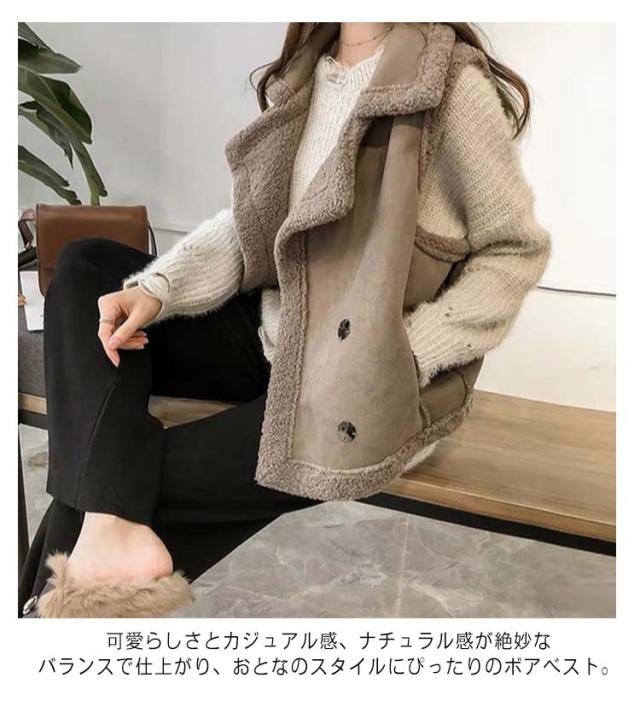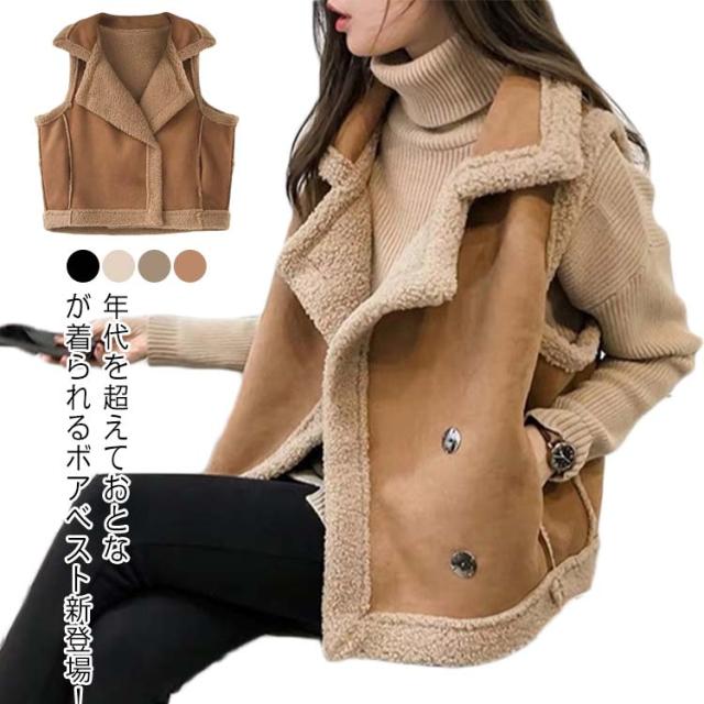 ボアベスト 羽織り ノースリーブ 前ボタン ボアフリース ベスト レディース ムートンジャケット ジレ アウター ボアベスト ベスト もこもこ ポケット 裏ボア 厚手 対策 重ね着 レイヤード ゆったり 体型カバー 秋冬 送料無料 30代 40代