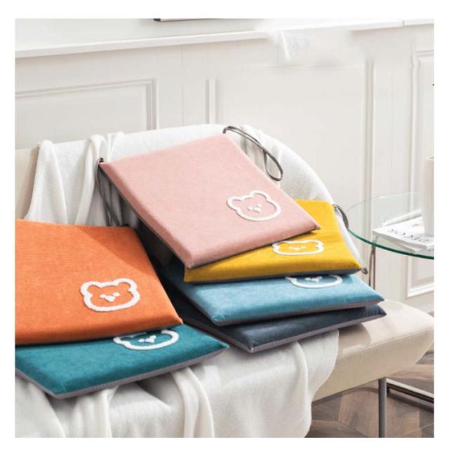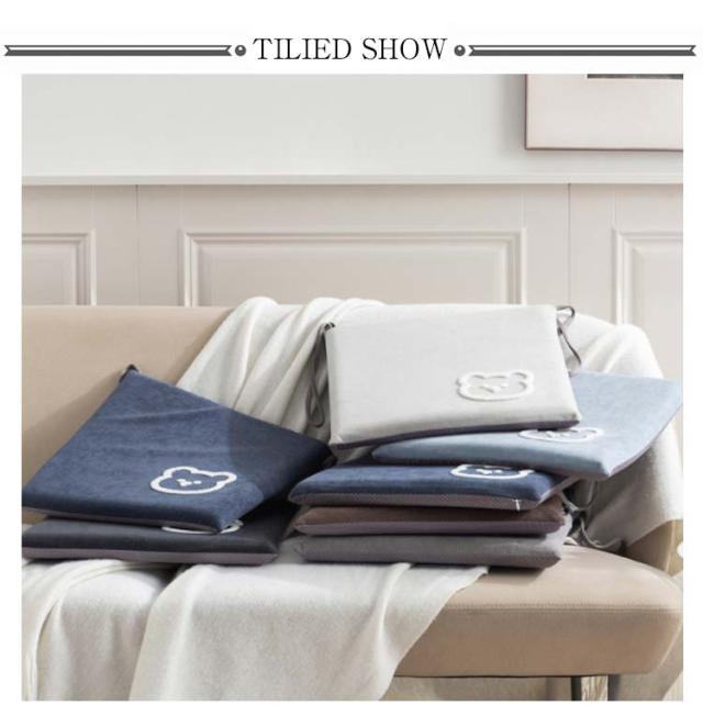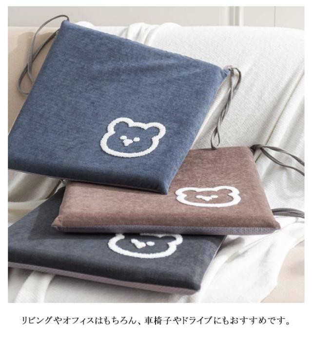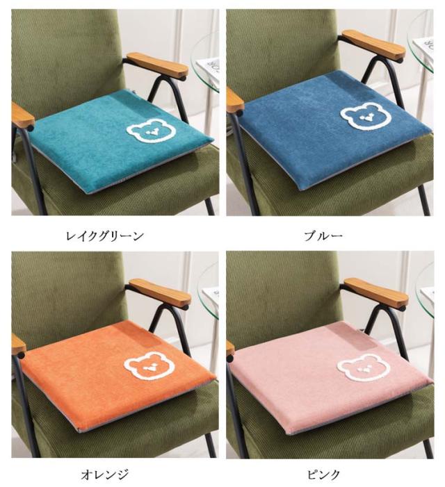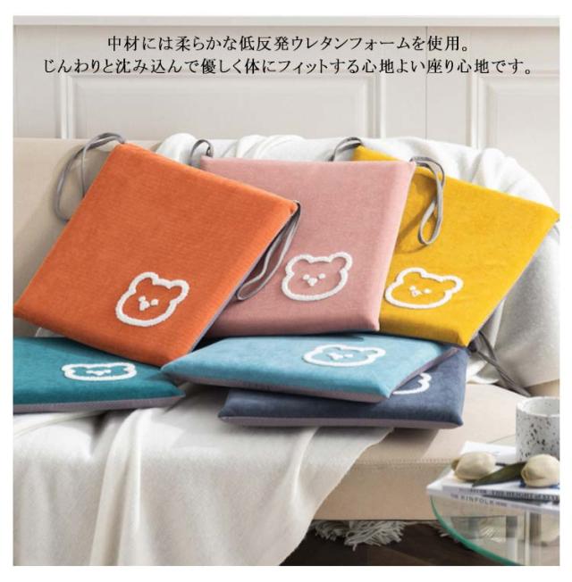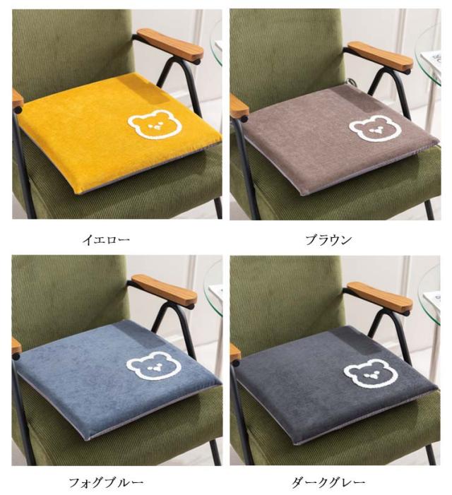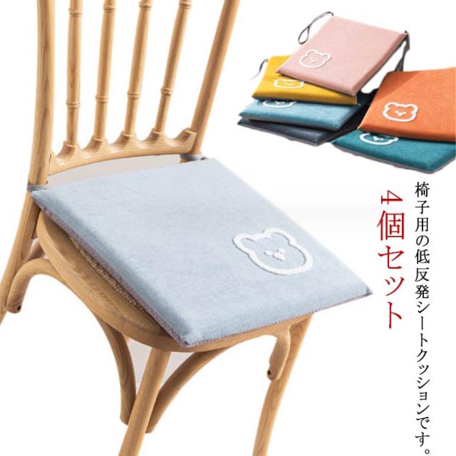 チェアクッション 滑り止め チェアパッド 低反発 4個セット チェアパッド 厚手 厚さ4cm 40×40cm 座布団 マット クマ 熊 かわいい ナチュラル くすみカラー オールシーズン 体圧分散 リビング