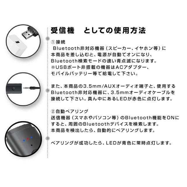 内容物:Bluetoothトランスミッター×1、3.5mmオーディオケーブル×1、日本語取扱説明書×1