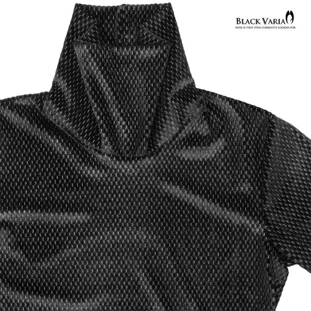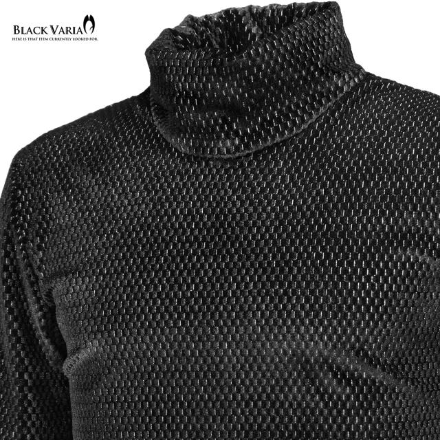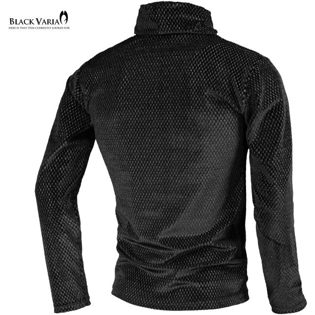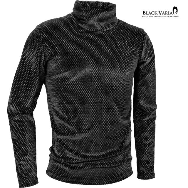 タートルネックシャツ 長袖 幾何学 ベロア ラメ メンズ ストレッチ mens(ブラック黒シルバー銀) 233704