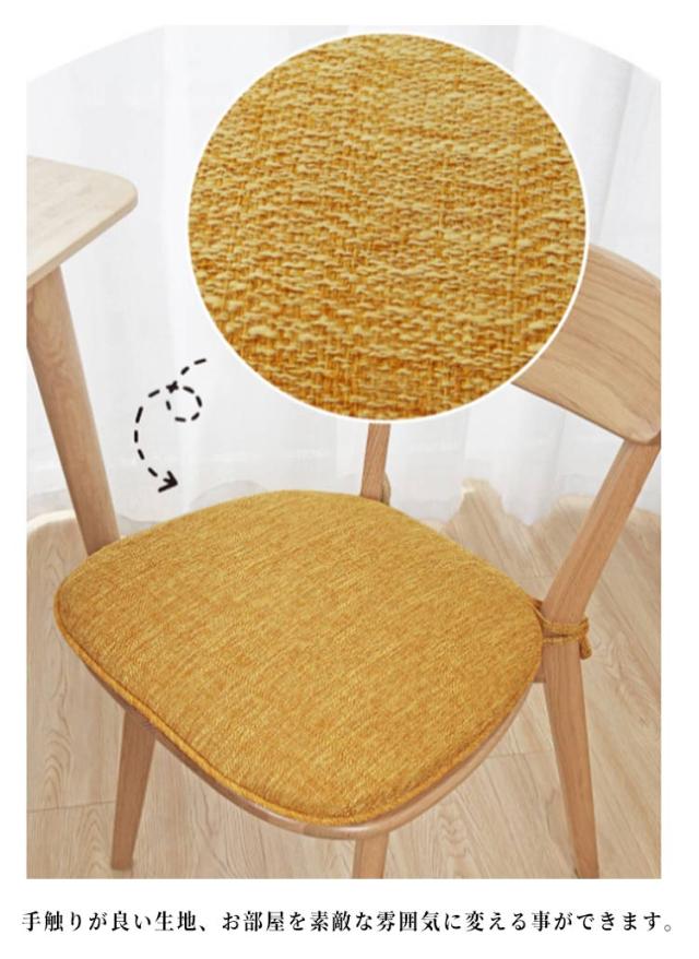 | 高級感と上品さを演出する椅子クッションです。 手触りが良い生地、お部屋を素敵な雰囲気に変える事ができます。 密度の高い高反発ウレタン中材は耐久性にも優れて、体をクッション中心部からしっかりと支えます。 裏面に滑り止め付き、立ったり座ったりした際のズレ落ち防止。 紐付きで、様々な椅子に対応できるので、安心してご利用いただけます。 カバーは取り外して洗えるので、いつでも清潔にお使いいただけます。 8色展開で四季問わず使えられ、和室でも洋室でも似合います | |