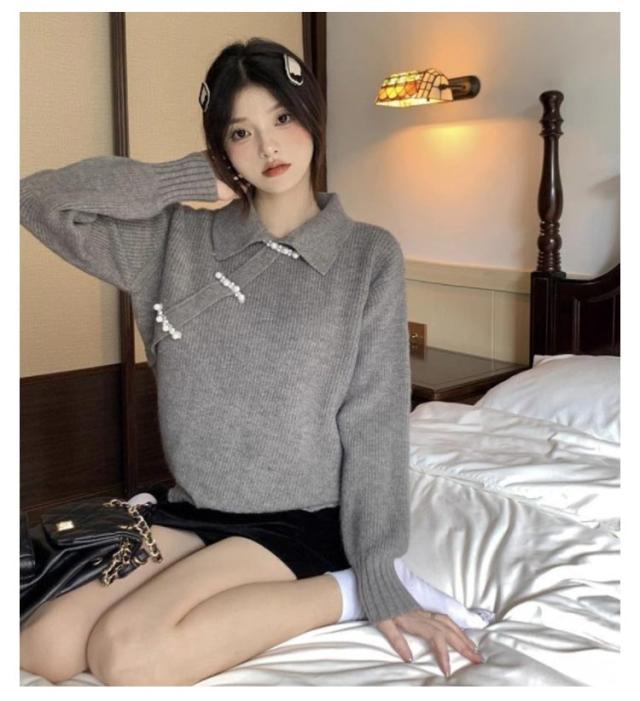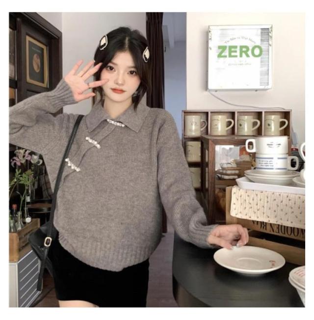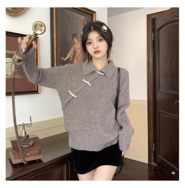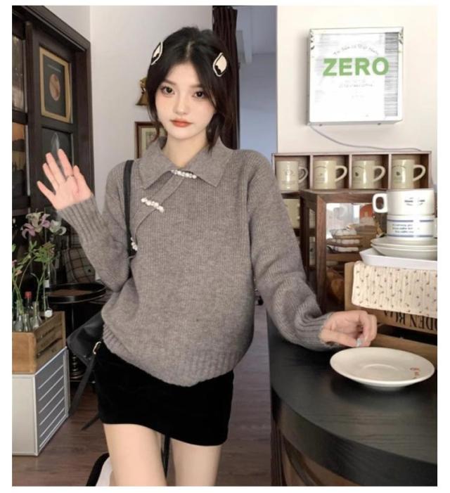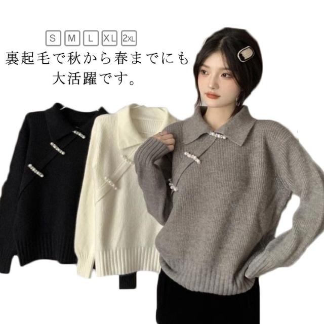 ニットトップス セーター チャイナ風 長袖 折り襟 レディース ニット 長袖 秋冬 ゆったり プルオーバー トップス 無地 レトロ 暖かい おしゃれ きれい 可愛い アウター 着痩せ 通勤 新年 プレゼント