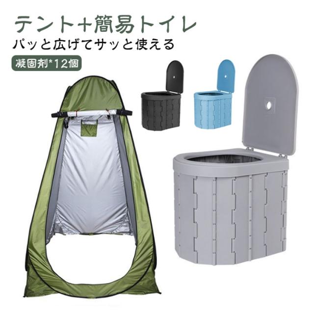 ポータブルトイレ テントセット ワンタッチテント 簡易 非常用トイレセット非常用トイレ 簡易トイレ 携帯 椅子式 着替えテント キャンプ アウトドア 非常用 折りたたみ 折り畳み 排泄処理袋 凝固剤 ビニール袋 臭わない 着替え用テント 仮設トイレ 非常用 トイレ 災害 トイレ
