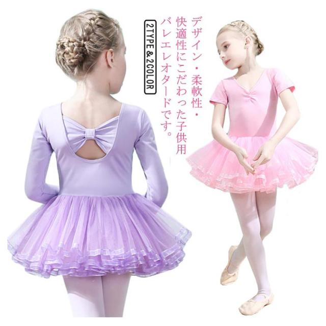 バレエレオタード 子供用 キッズ用 ワンピース 半袖 長袖 ジュニア チュチュスカート ふわふわ レオタード バレエ練習服 体操服 女の子 練習着 発表会 演出服 舞台用 送料無料
