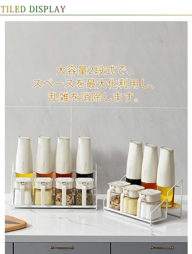 調味料ラック スパイスラック 調味料収納 組み立て不要 2段 北欧風 キッチンラック ボトルラック シンク上ラック 調味料いれ 浴室 台所 卓上 大容量 省スペース お洒落 キッチン用品
