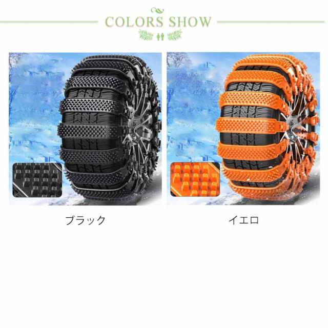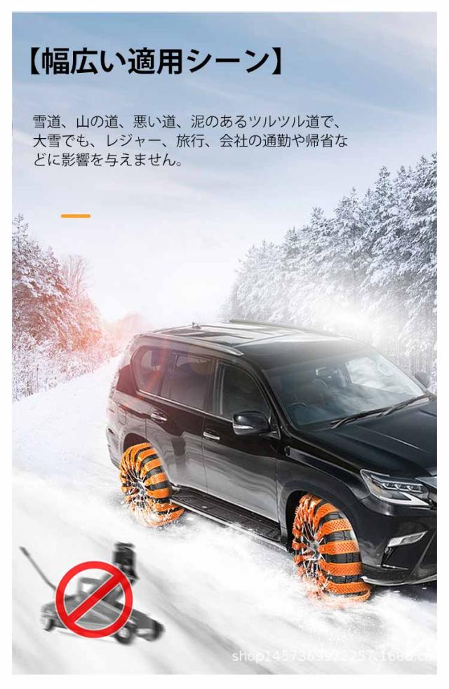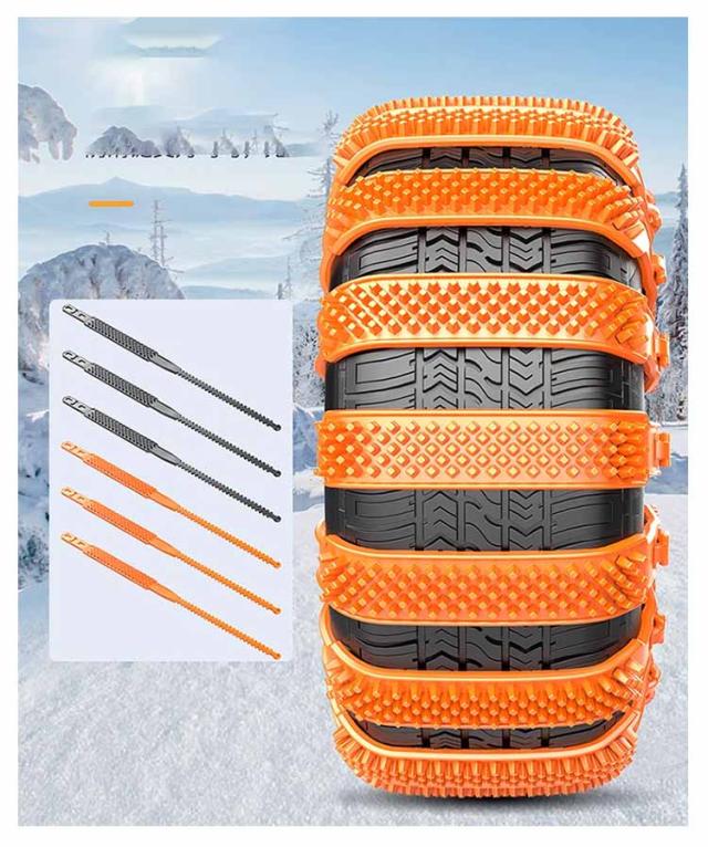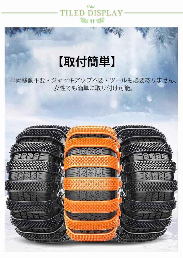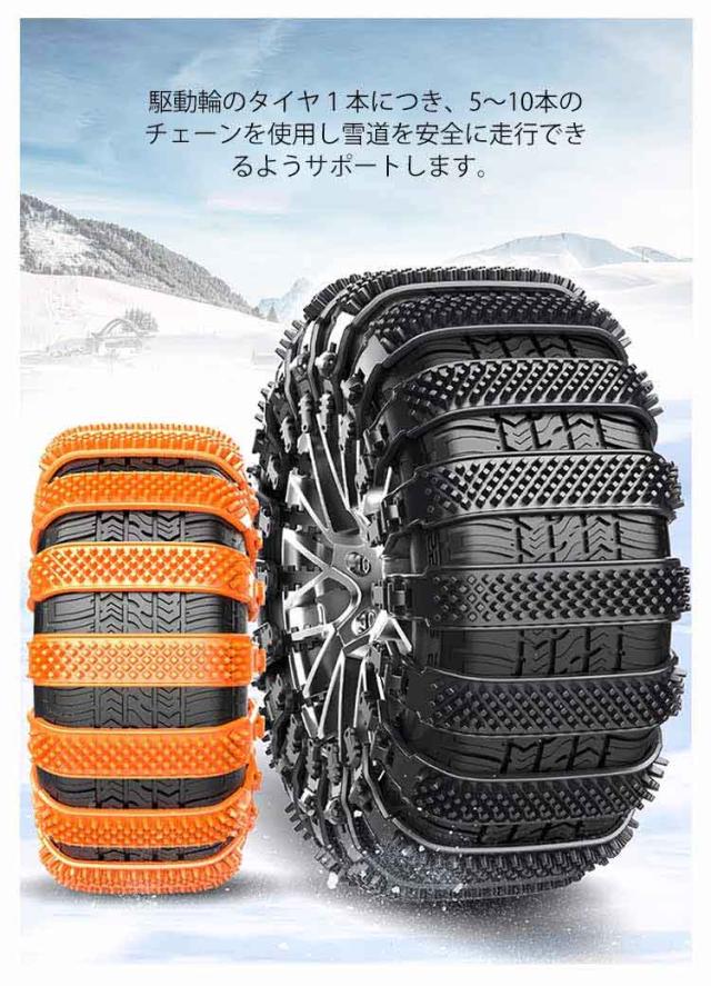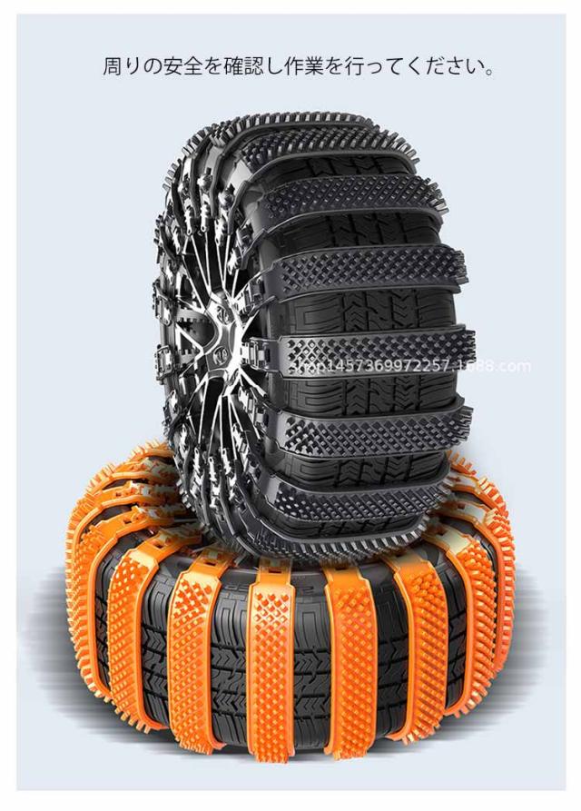 | 結束バンド型のタイヤチェーン 対応タイヤ幅165-275mm! 繰り返し使用可 【取付簡単】:車両移動不要・ジャッキアップ不要・ツールも必要ありません、女性でも簡単に取り付け可能。 【強化樹脂素材、耐摩耗性】:ポリウレタン樹脂は機械的強度、高い軟化点、耐熱性、低摩擦係数、耐摩耗性、衝撃吸収性、騒音低減性を備えているため、滑り止め特性を発揮しながら騒音を大幅に低減できます。タイヤを傷つけません。 【幅広い適用シーン】:雪道、山の道、悪い道、泥のあるツルツル道で、大雪でも、レジャー、旅行、会社の通勤や帰省などに影響を与えません。 駆動輪のタイヤ1本につき、5〜10本のチェーンを使用し雪道を安全に走行できるようサポートします。 ※チェーンを装着する時は平面でサイドブレーキをしっかり引いて 周りの安全を確認し作業を行ってください。 | |