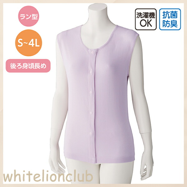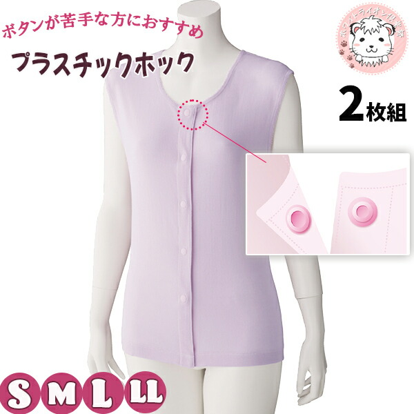 ラン型 ホックシャツ 2枚組 綿100% 抗菌 防臭 名前記入欄付 S/M/L/LL | 婦人用 タンクトップ ノースリーブ 前開き シャツ プラスチックホック式 介護インナー