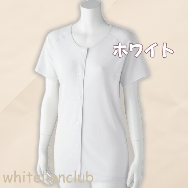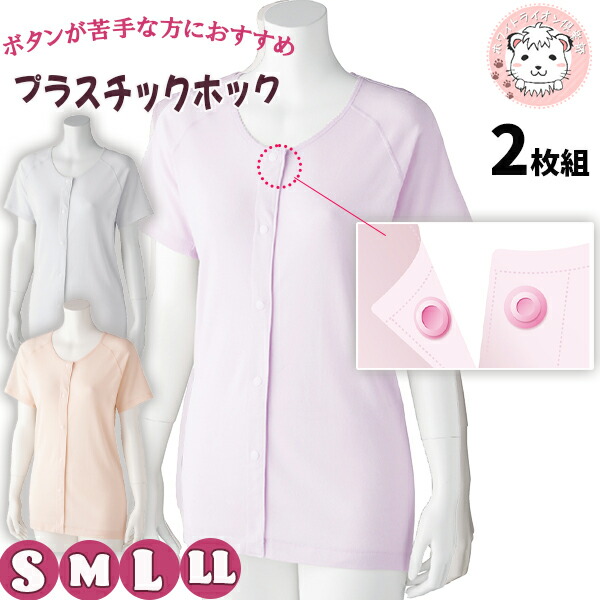 3分袖 ホックシャツ 2枚組 綿100% 抗菌 防臭 名前記入欄付 S/M/L/LL | 婦人 肌着 半袖 三分袖 スナップボタン 前開きシャツ プラスチックホック式 介護インナー