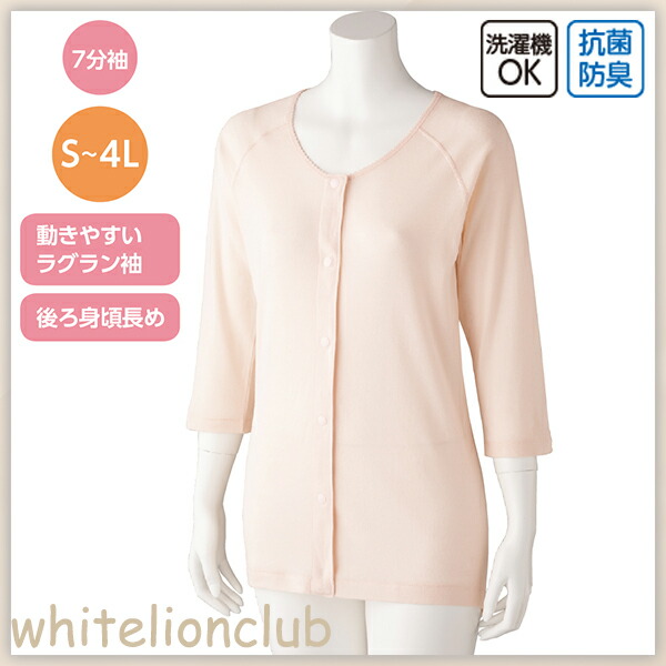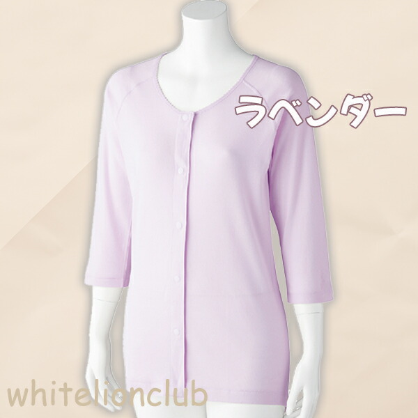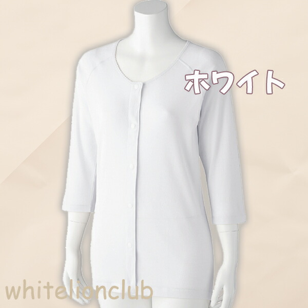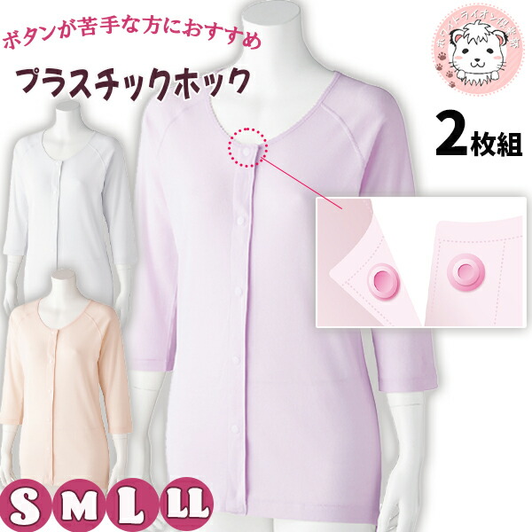 7分袖 ホックシャツ 2枚組 綿100% 抗菌 防臭 後ろ身頃長め 名前記入欄付 S/M/L/L | 婦人 肌着 七分袖 タグなし 前開きシャツ プラスチックホック式 介護インナー