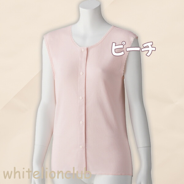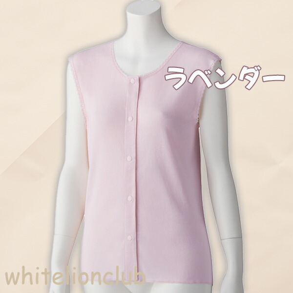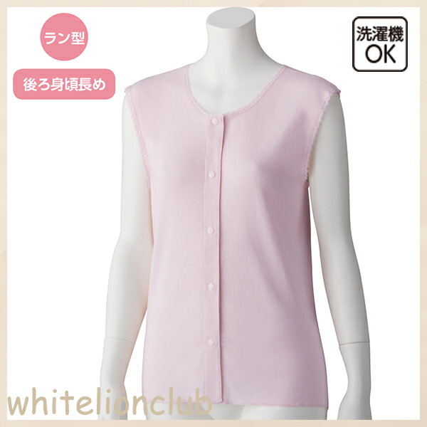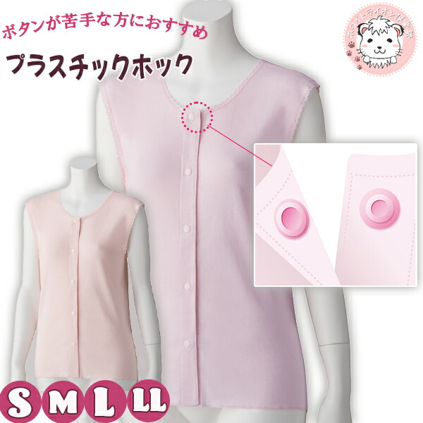 ラン型 ホックシャツ 綿100% 名前記入欄付 後ろ身頃長め タグなし S/M/L/LL | 婦人 タンクトップ ノースリーブ 前開きシャツ プラスチックホック式 介護インナー