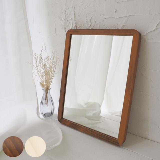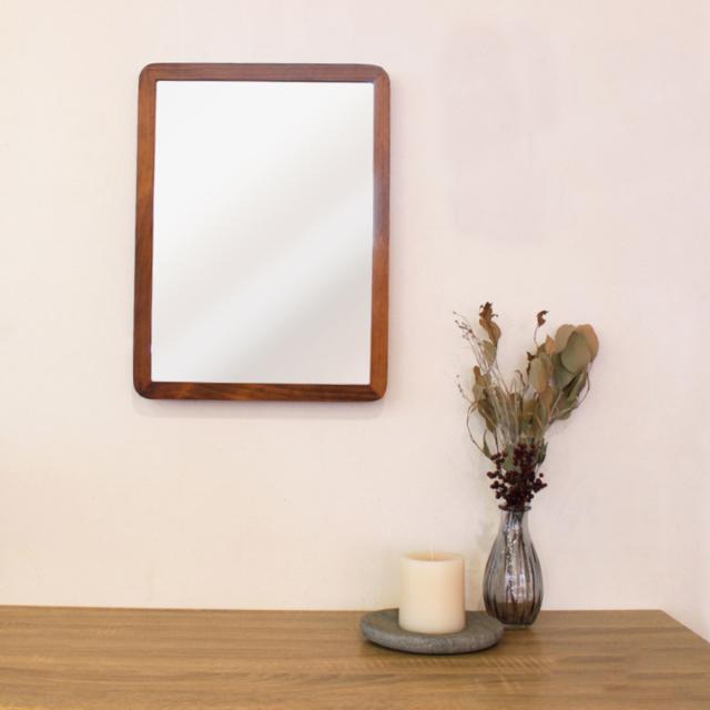 ウォールミラー 木製フレーム 30cm×40cm アコウスティック ( 鏡 ミラー 天然木 四角 角丸 北欧 ブラウン ナチュラル おしゃれ シンプル インテリア )
