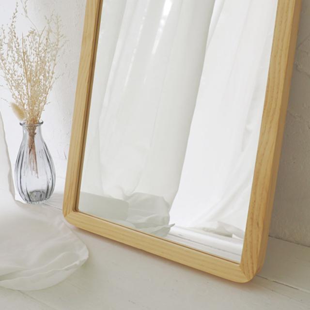木の温もりを感じる無垢材を使用しています。角が丸いフレームのデザインがお部屋を柔らかな雰囲気に包んでくれます。ナチュラルな印象でお部屋のインテリアにも合わせやすい壁掛けミラーです。