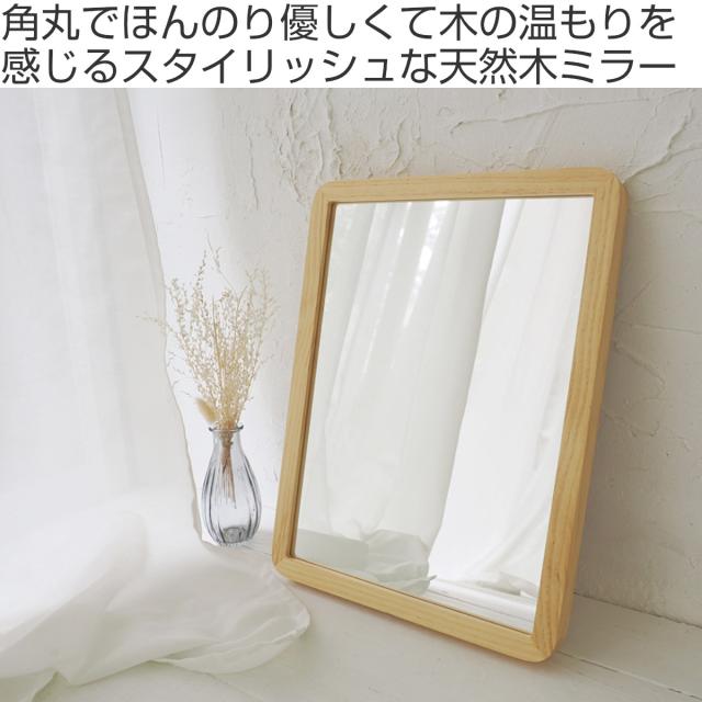 角丸で優しい木の温もりを感じるスタイリッシュな天然木ミラー