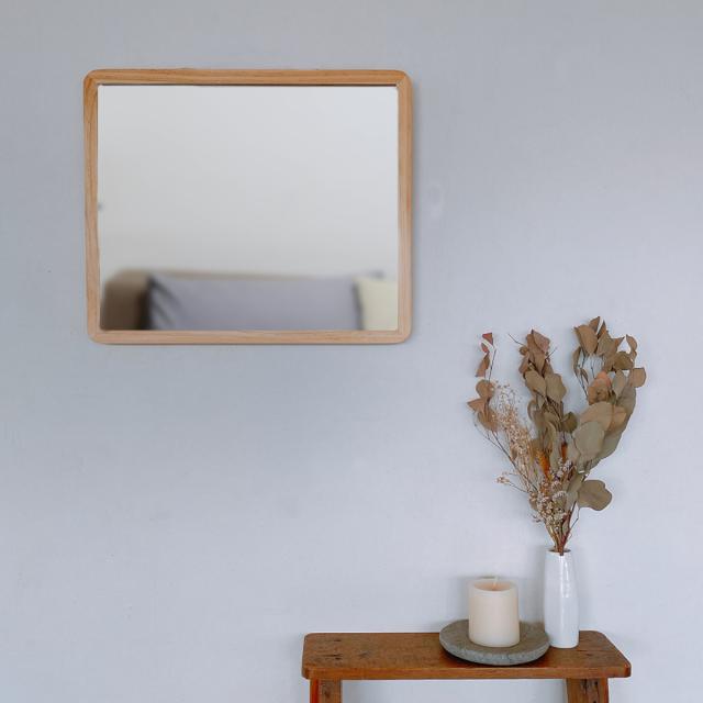 角丸で優しい木の温もりを感じるスタイリッシュな天然木ミラー