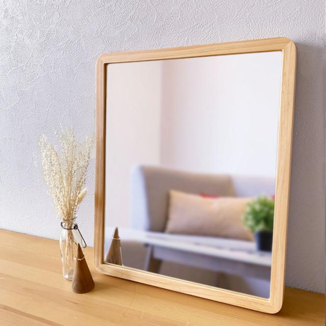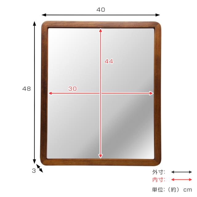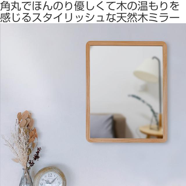 ウォールミラー 木製フレーム 40cm×48cm アコウスティック ( 鏡 ミラー 天然木 四角 角丸 北欧 ブラウン ナチュラル おしゃれ シンプル インテリア )