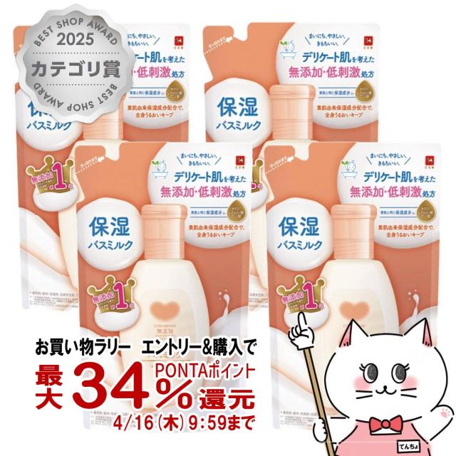 【お買い物ラリー 最大34%還元】[セット]牛乳石鹸 カウブランド 無添加保湿バスミルク 480ml×4個 つめかえ用[全身保湿 無添加 低刺激][送料無料] (6055605-set1)