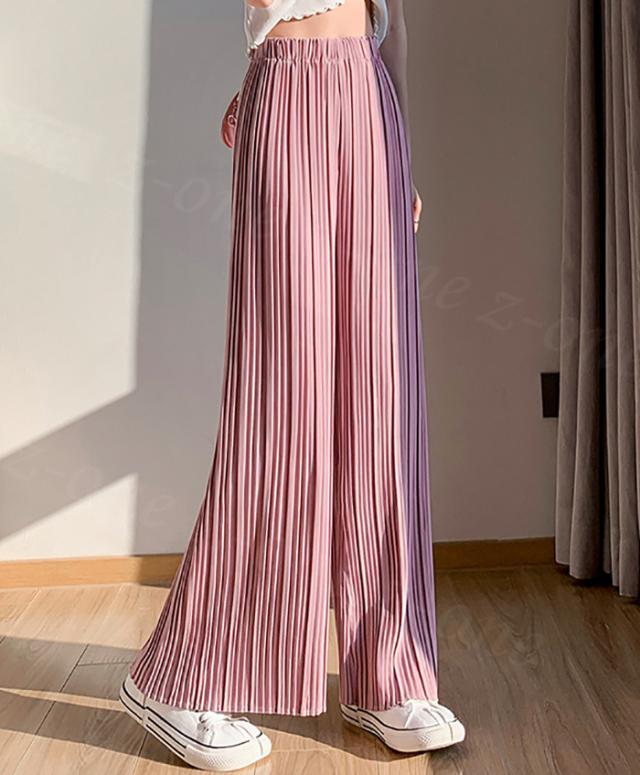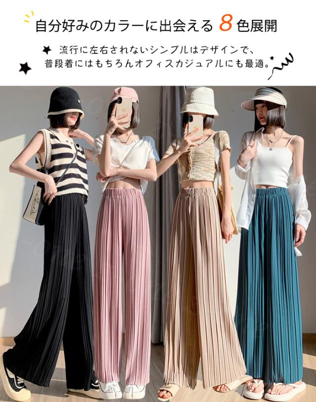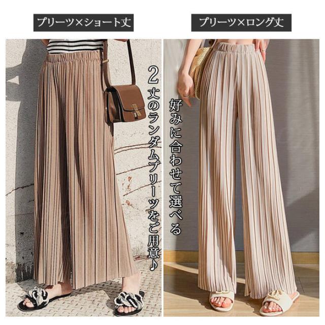 <72H限定・1点あたり1,290円!2点同時購入&クーポン利用で>プリーツパンツ パンツ 春新作 新作 ショート丈 ロング丈 ハイウエスト ウエストゴム レディース ガウチョパンツ シフォン プリーツワイドパンツ 大きいサイズ オフィス ボトムス スカーチョ 大人 トレンド