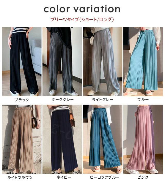- プリーツパンツの色違いを購入しました とてもはきやすく涼しいですまたリピートしたいです