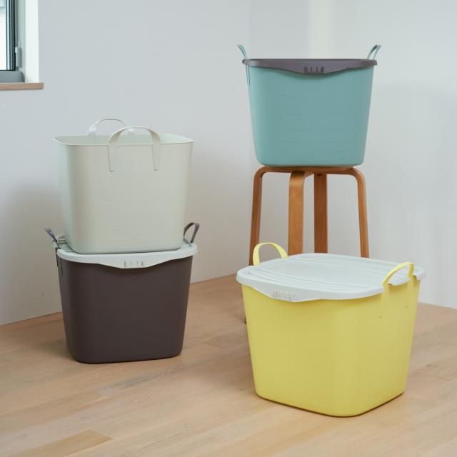 キッチンでもリビングでもどんなシーンでも気軽に扱える四角い容量40Lの収納です。家族みんなの洗濯物を入れるランドリーバスケットや、ペットのお風呂などにも便利です。