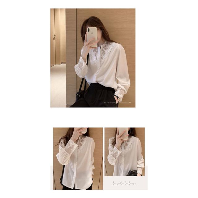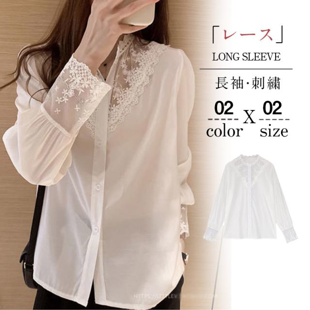 シャツ ブラウス レディース 刺繍 レースブラウス トップス 長袖 シャツ 大人セレブ カットソー おしゃれ韓国ファッション 春秋新作